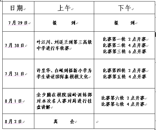 本次比赛采用单循环制、快棋赛7轮。具体比赛日程安排如下: