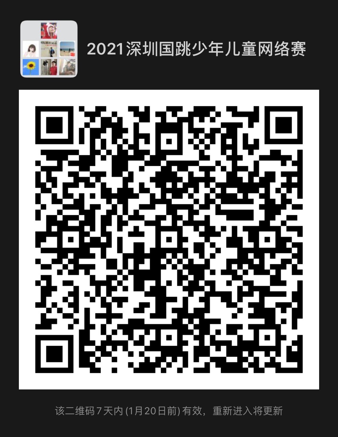 一、通过扫描二维码进入微信比赛群——“2021深圳国跳少年儿童网络赛”;