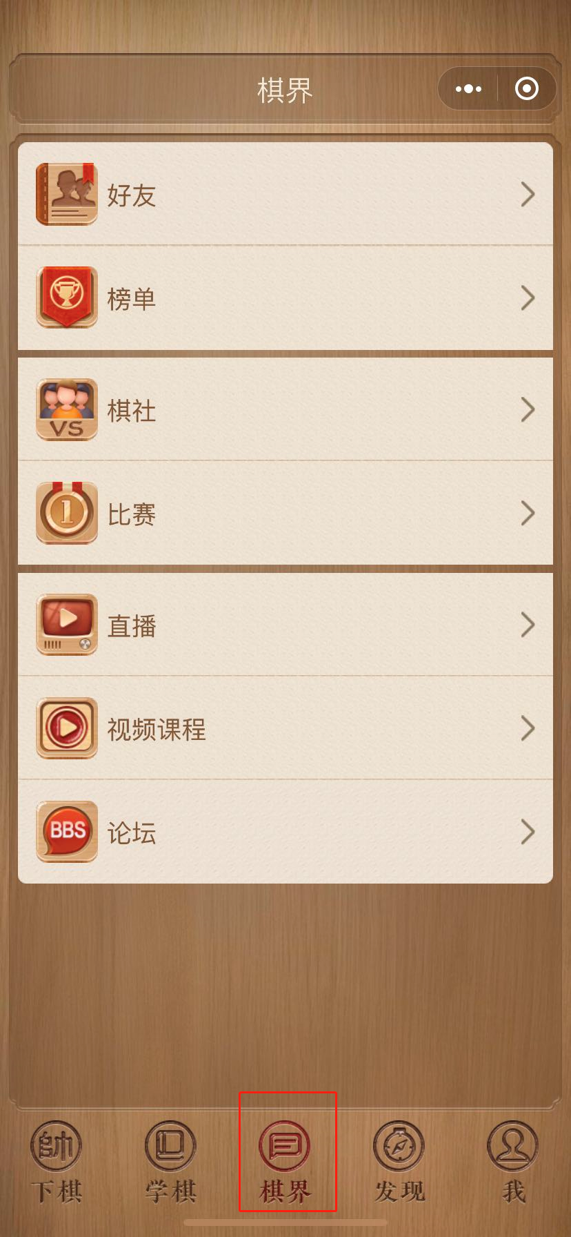 第一步:点击“棋界”