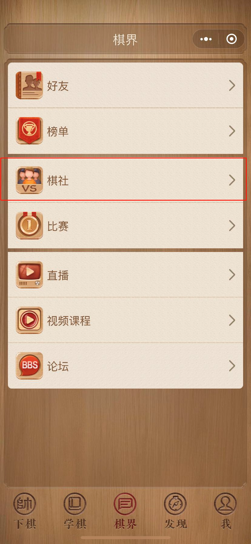 第二步:点击"棋社"