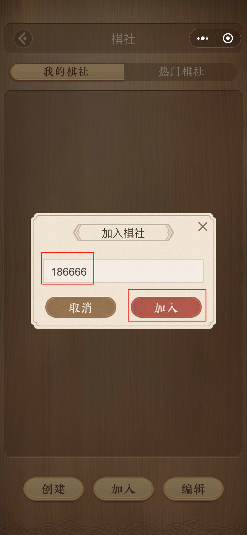 第四步:输入棋社号:186666